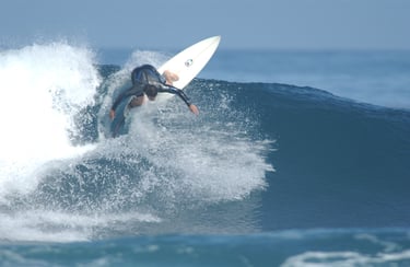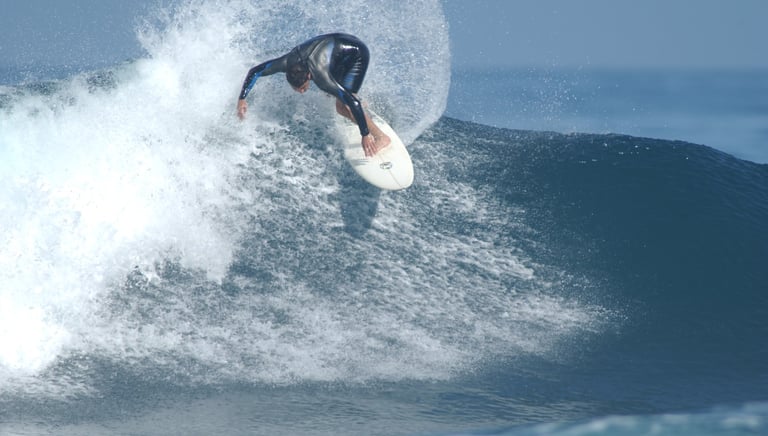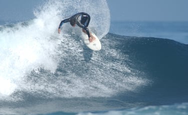Thierry Vidal découvre le surf à Anglet dès l’âge de 6 ans. Très vite passionné par l’océan et la glisse, il évolue sur toutes les plages de la côte basque et se construit un style solide au fil des années. Le surf devient rapidement une évidence dans son parcours de vie, avec une progression naturelle vers le haut niveau et la compétition.